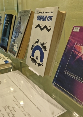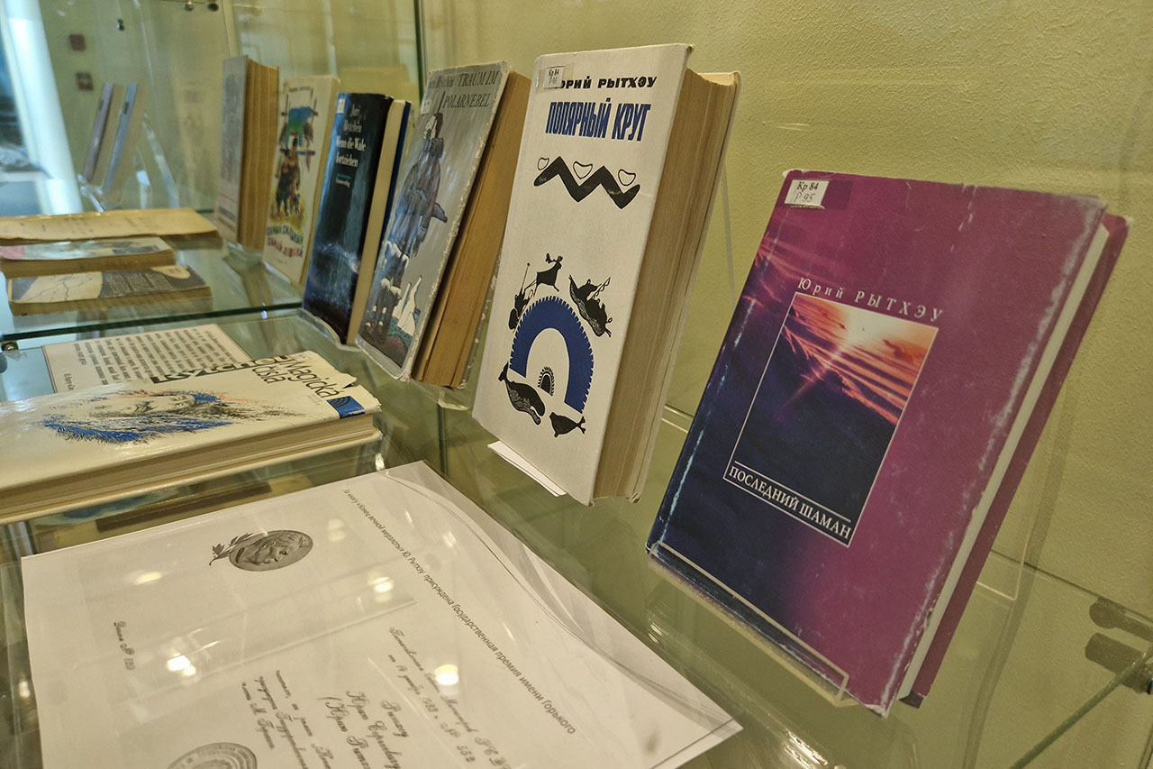 Часть выставки посвящена творчеству Юрия Сергеевича Рытхэу.